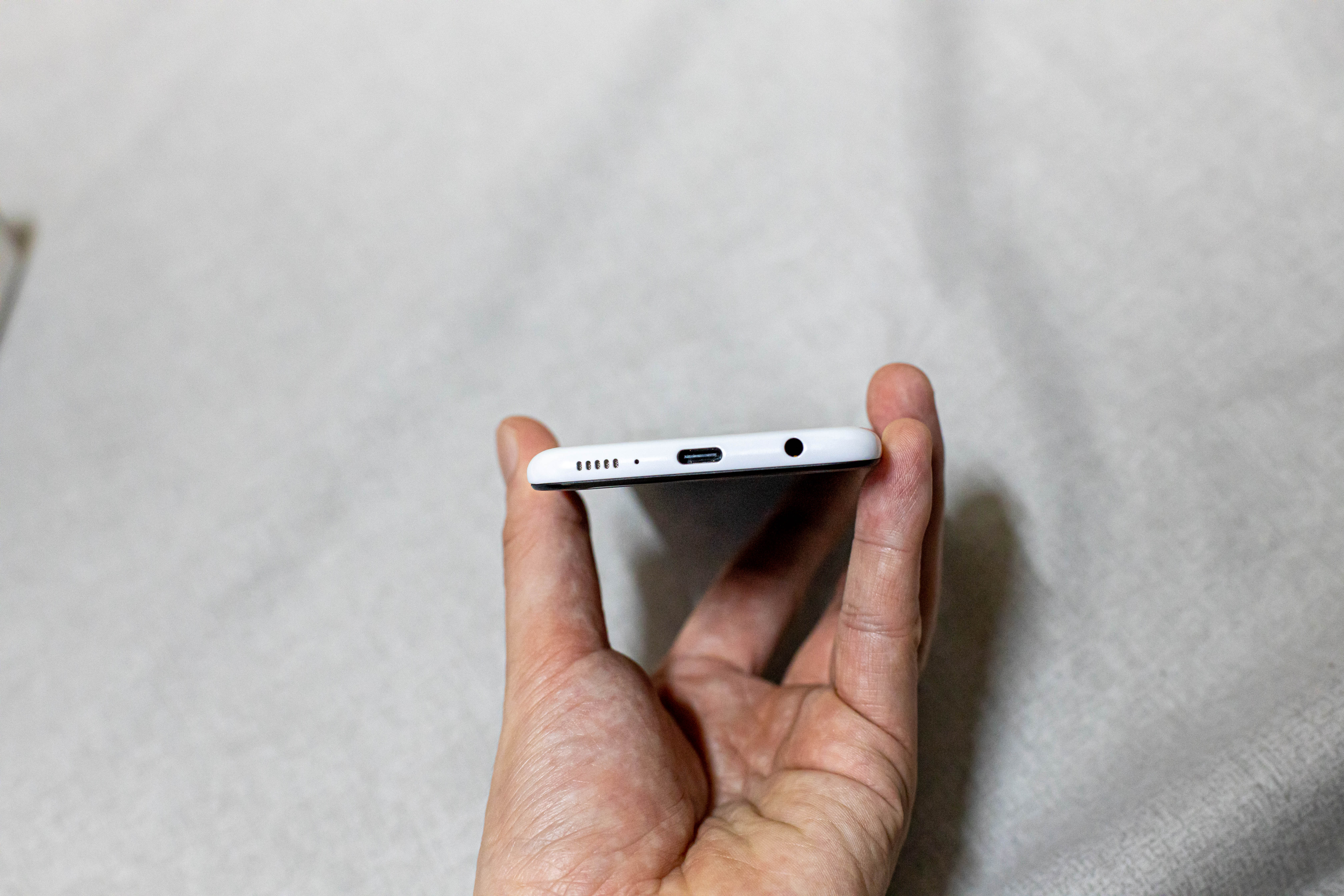 밑면에는 이어폰 단자가 있고요 충전은 C타입으로 충전이 됩니다.