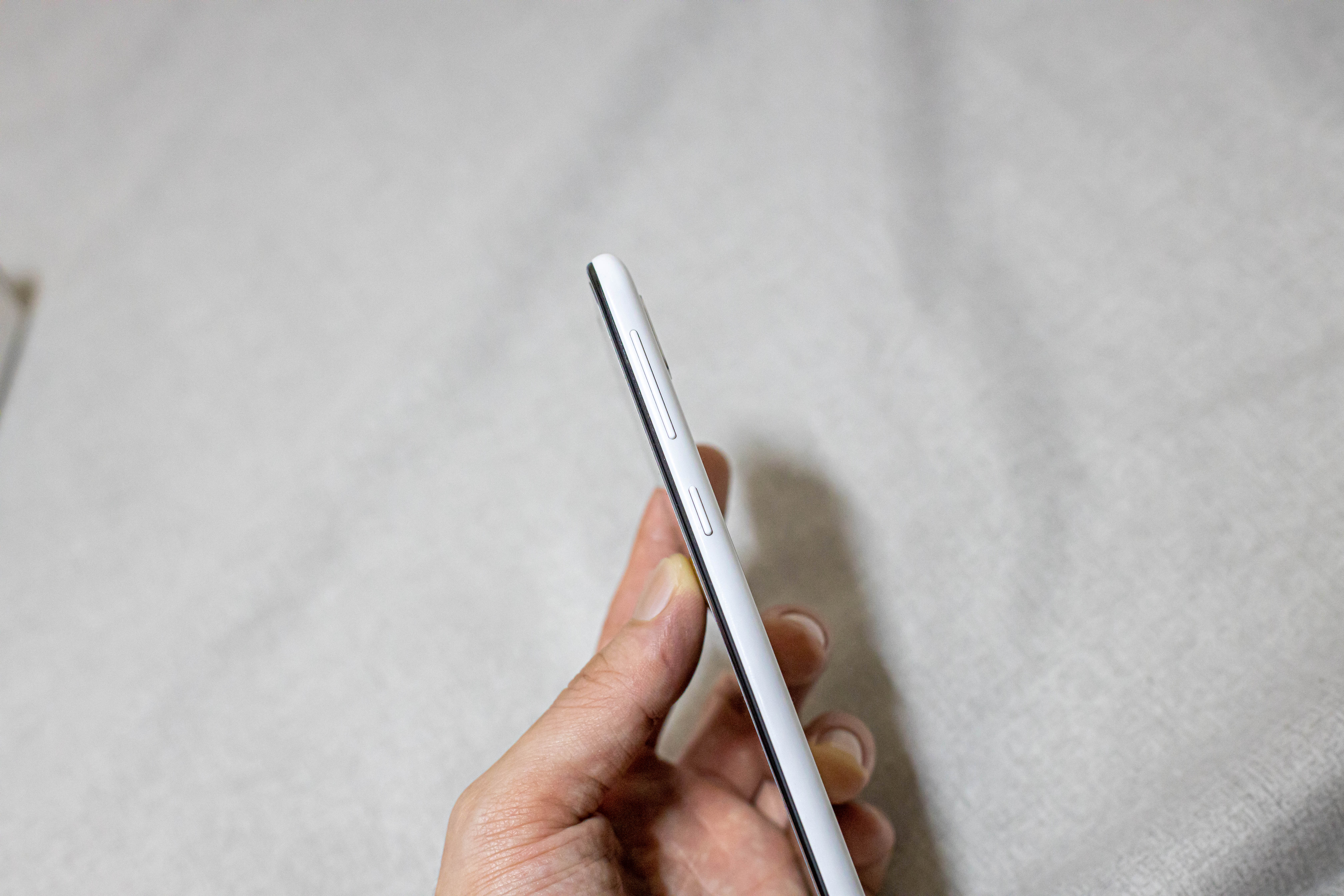 오른쪽면에는 위에 큰 버튼이 음량 버튼이고요 고 밑에 있는 버튼이 전원 버튼입니다.